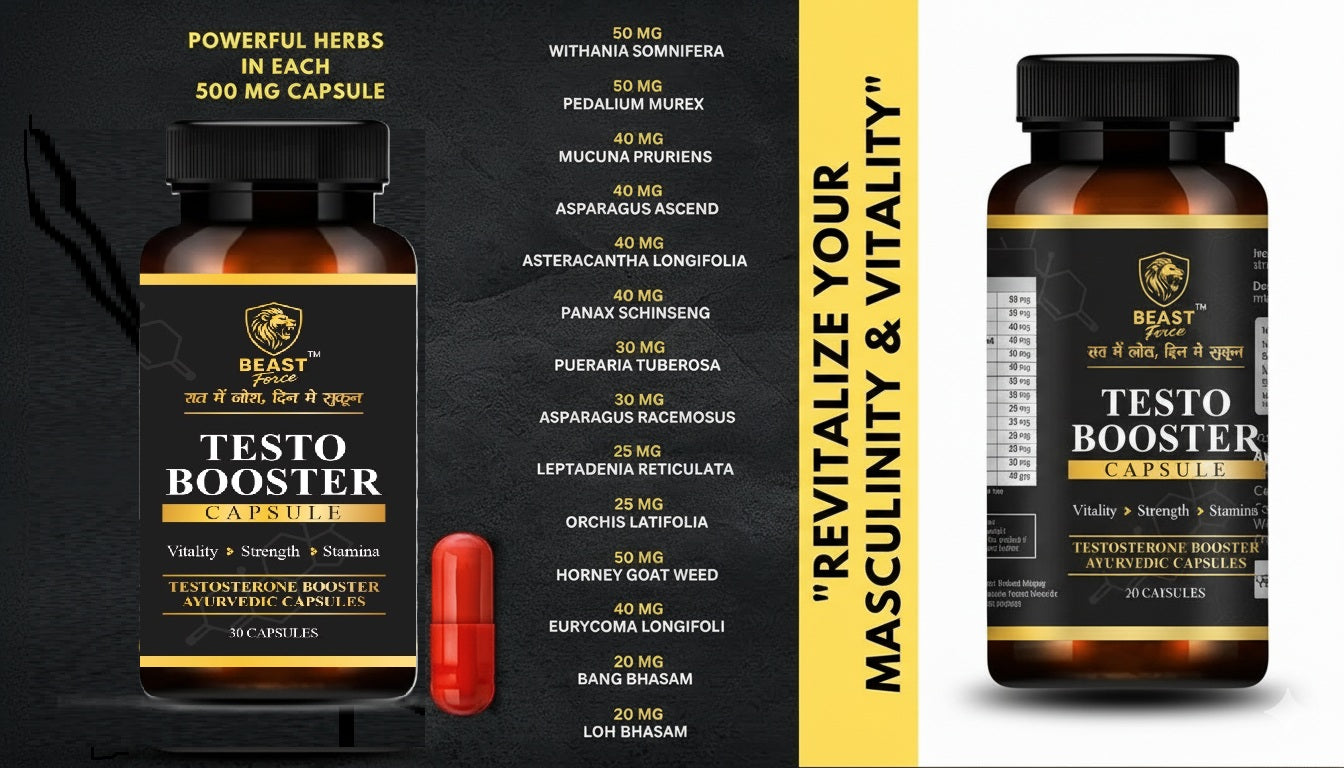 #NaturalTestosteroneBooster #AyurvedicSupplements #MensHealth #MuscleBuildingSupplement #StaminaBooster #PerformanceEnhancer #IndianFitness #BeastForce